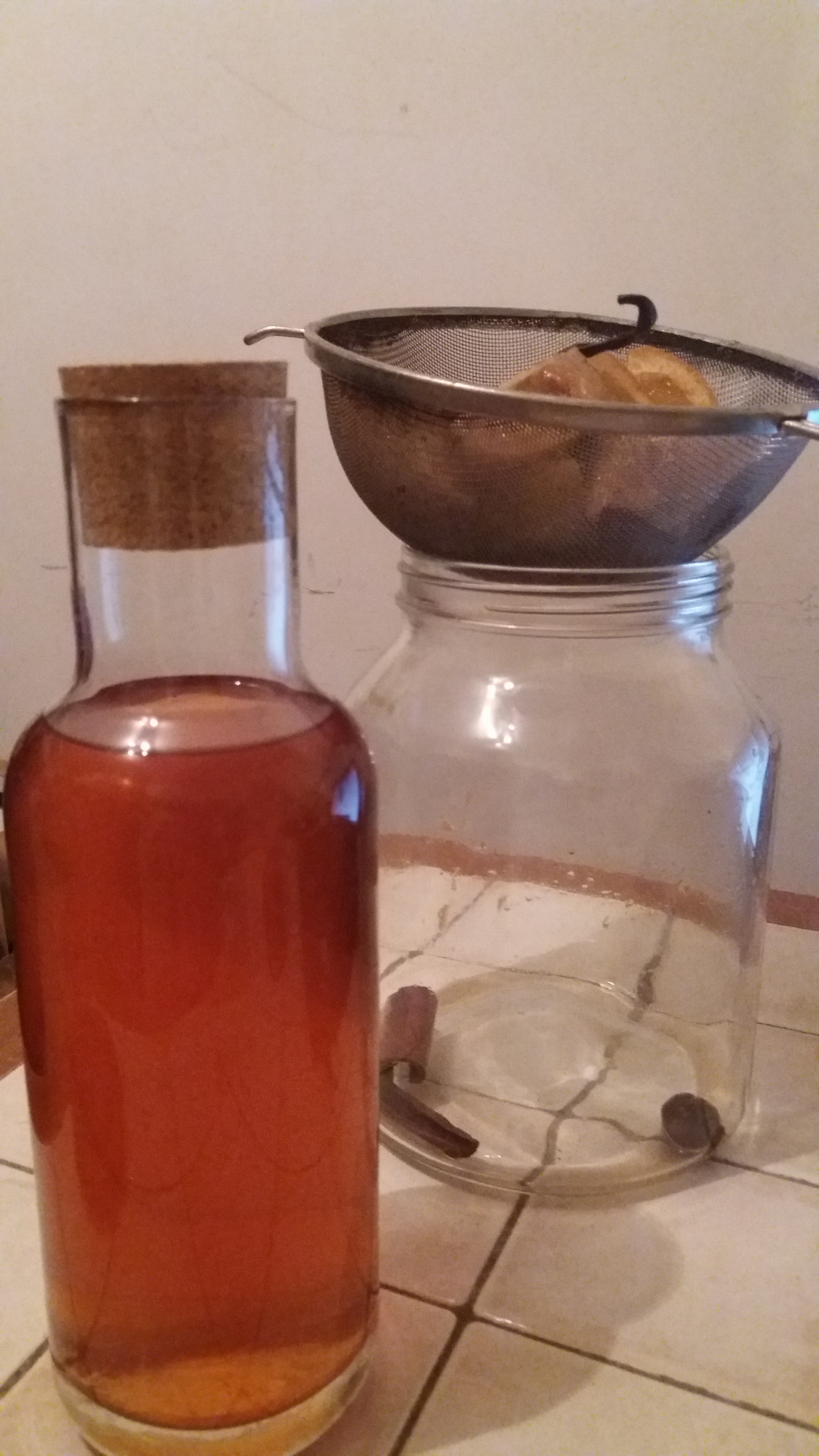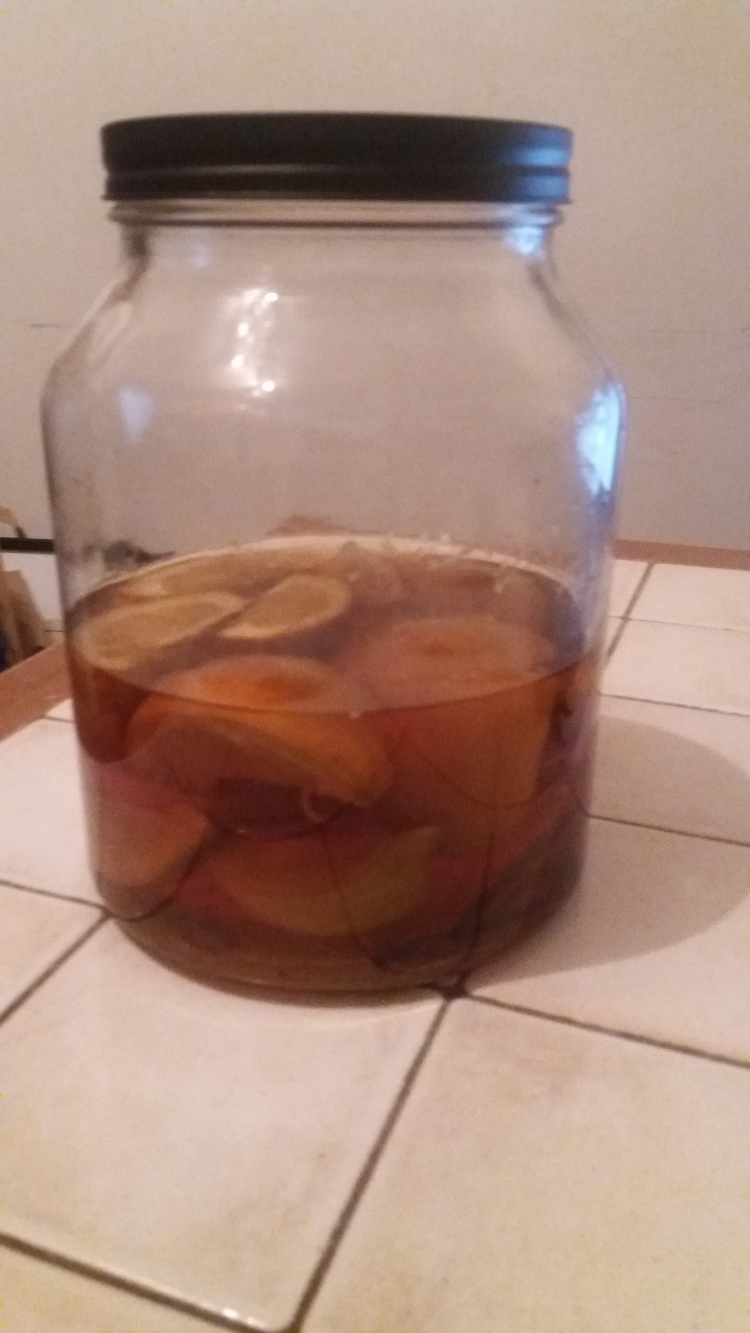 Mettre les fruits dans un grand bocal, avec le vin, le sucre, la vanille fendue en 2. Bien remuer avec une cuillère en bois.